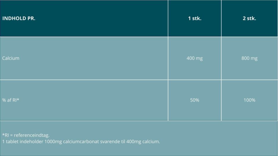 Anbefales til personer, som ønsker at supplere kosten med kalk, og som får tilstrækkeligt med D-vitamin på anden vis, evt. som kosttilskud.